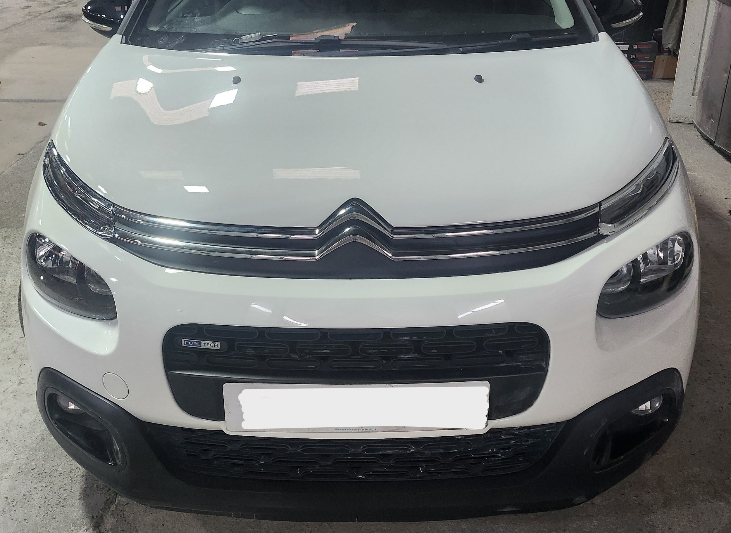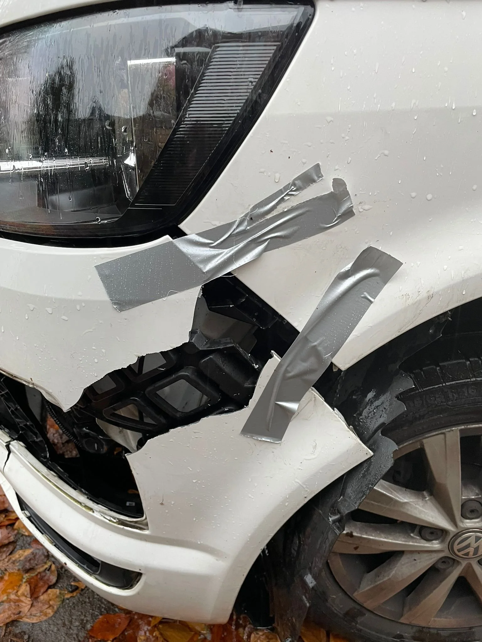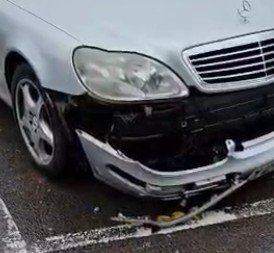 Full-view of the vehicle, close-ups of the damage and reg number.